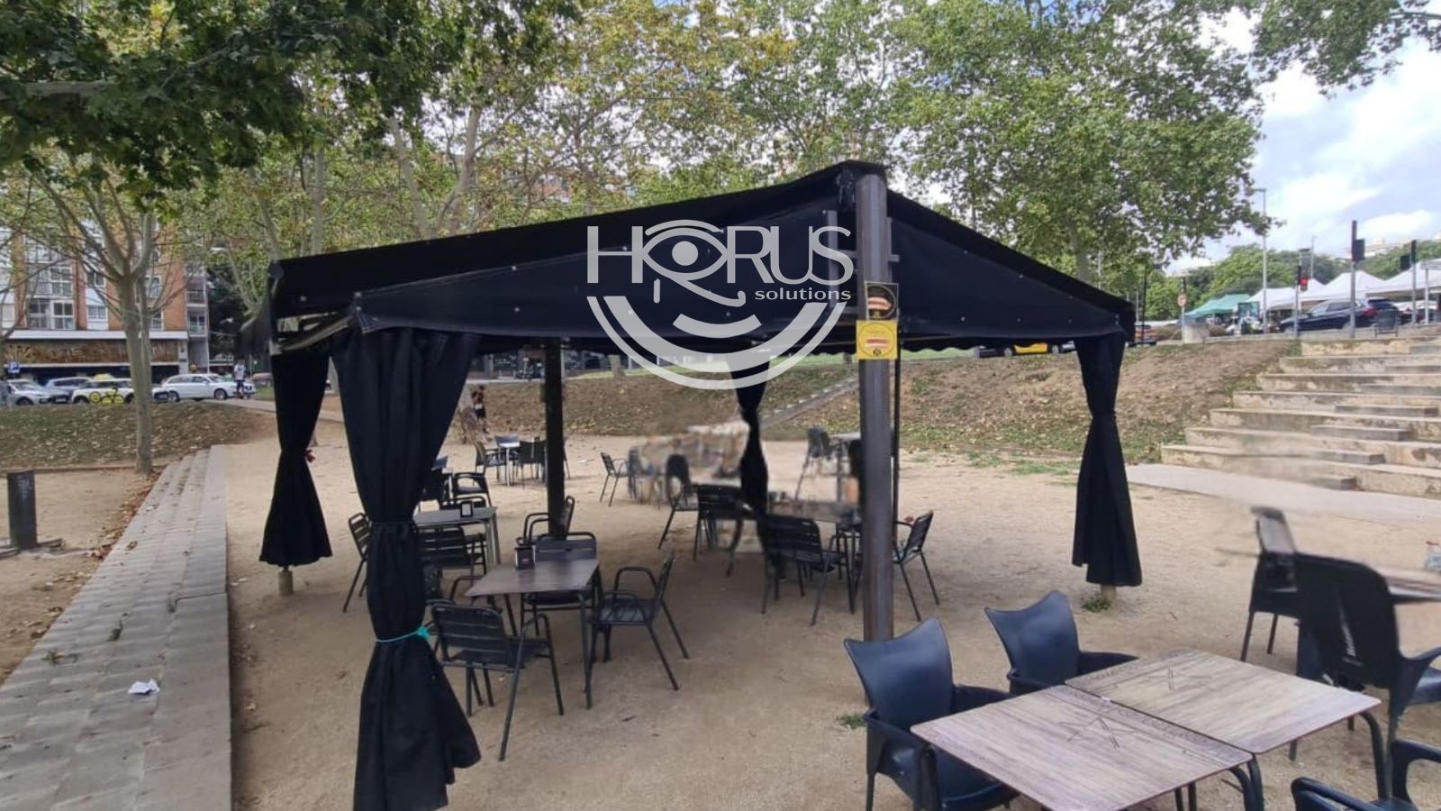 ✅ Terraza de 10 mesas y 40 sillas situada en un parque